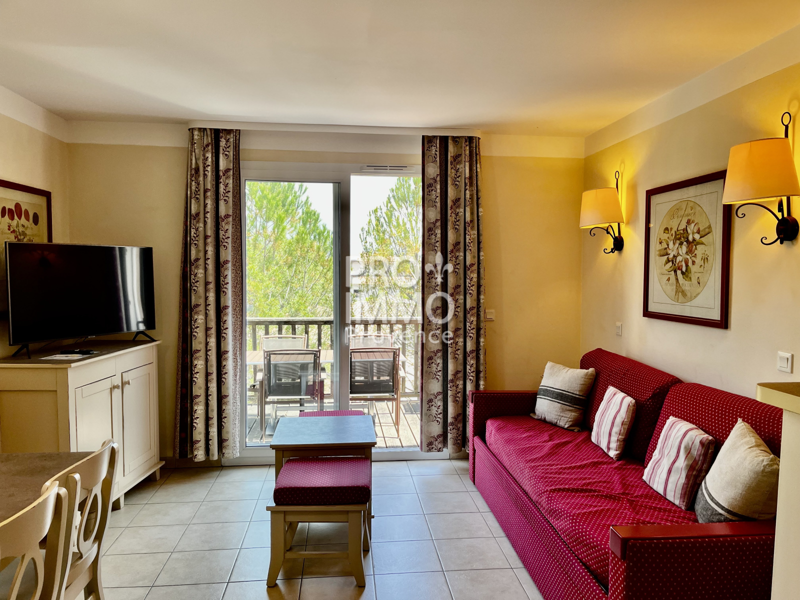 À louer sur le domaine sécurisé 24h/24 du golf de Pont Royal (13370) Mallemort, bastide R+1 de type 3 meublée et équipée avec lave linge, parking privé dans résidence et piscine chauffée ouverte en période estivale.