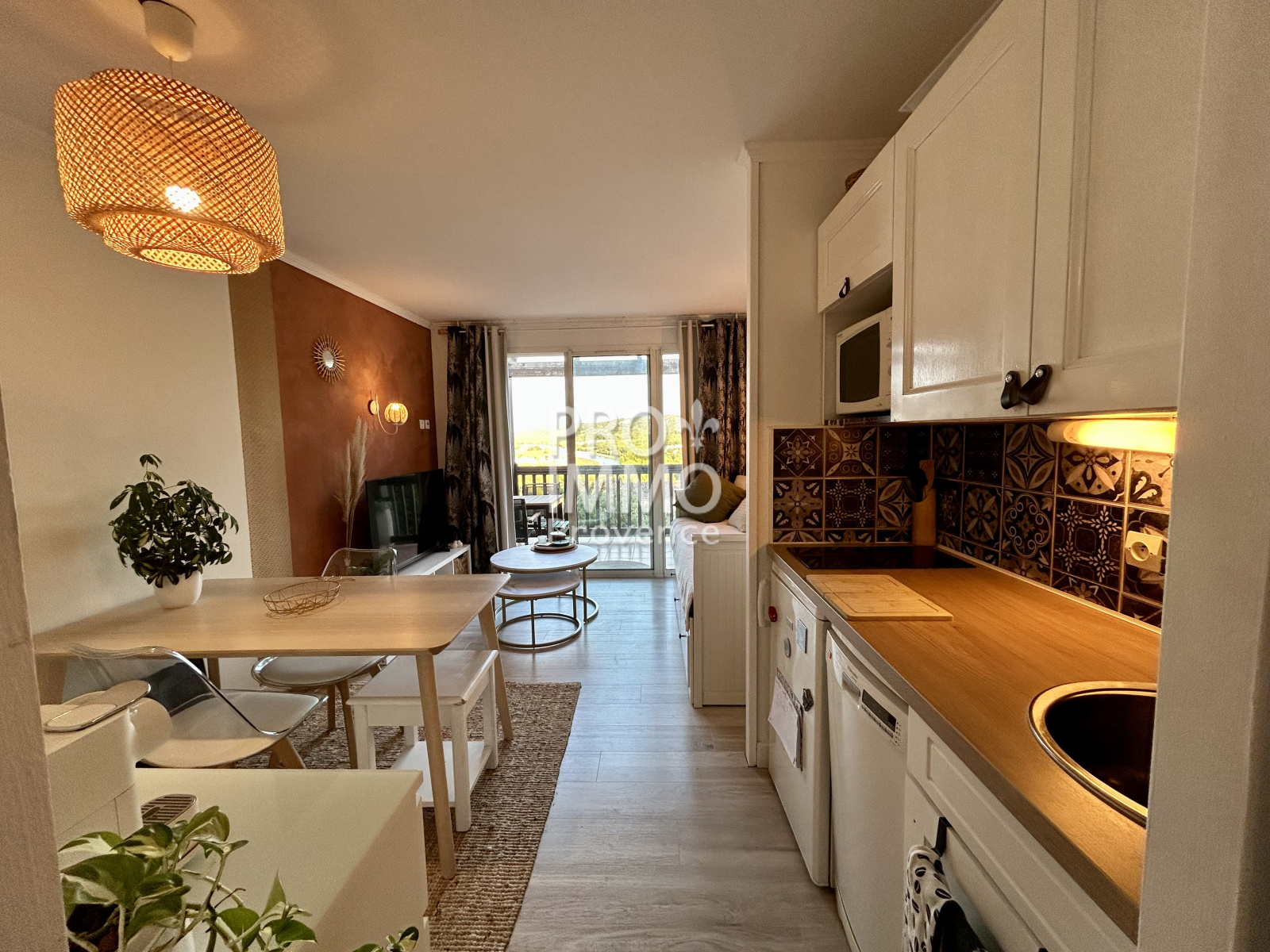 Le bien est composé d'une entrée avec rangements, une chambre, une salle de bains avec wc, une kitchenette équipée, un séjour.